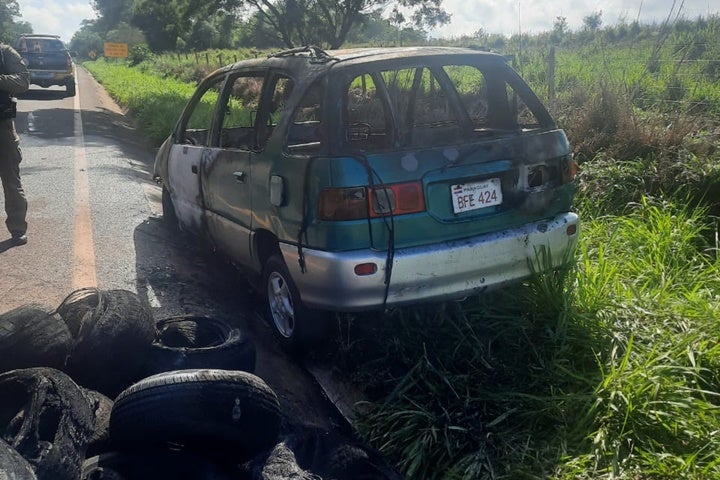 MANHÃ DE SÁBADO 13/10/2024 às 10:27 PRE apreende carro queimado carregando com pneus na PR-323, em Iporã