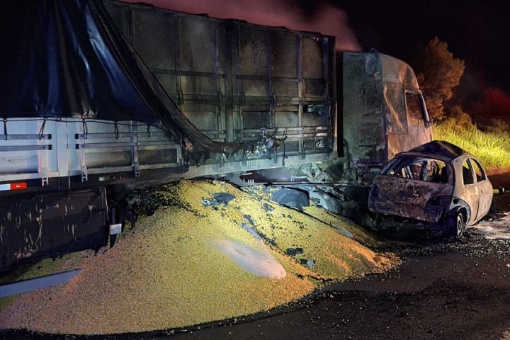MARECHAL CÂNDIDO RONDON 06/01/2024 às 11:39 Condutor de automóvel morre carbonizado após colisão com caminhão na BR-163
