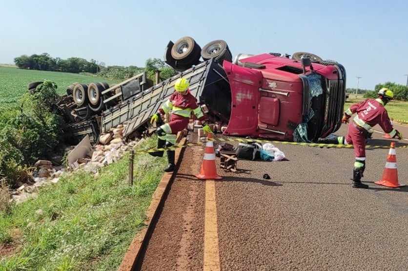 MATO GROSSO DO SUL 15/01/2025 às 13:37 Carreta com placas de Umuarama que estava carregada com alimentos tomba na BR-163
