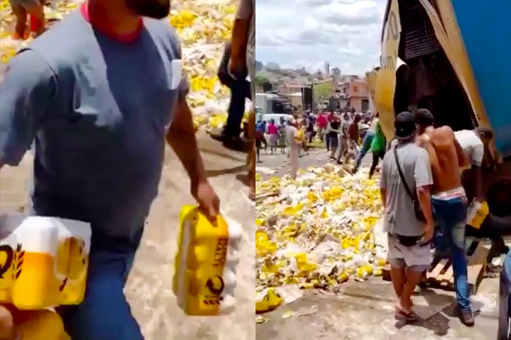MINAS GERAIS 25/02/2022 às 11:09 Open Bar! Carreta carregada com 192 mil latas de cerveja tomba e carga é saqueada
