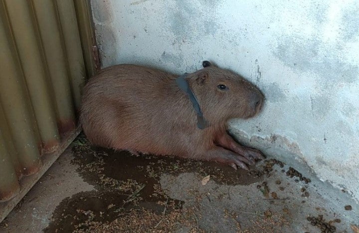 NA LATA 26/02/2022 às 09:37 Capivara com pedaço de lata presa no pescoço é resgatada pelo Corpo de Bombeiros