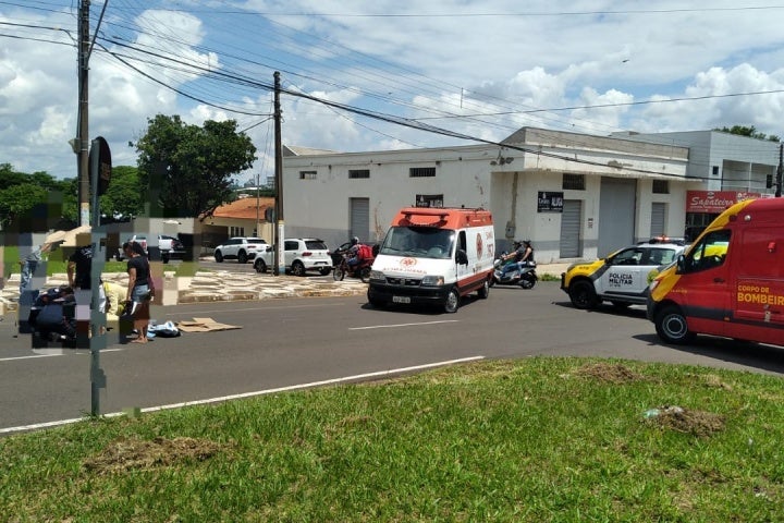 NESTA TARDE 11/12/2024 às 18:53 Mulher fica ferida após colisão entre duas motos na tarde desta quarta-feira em Umuarama