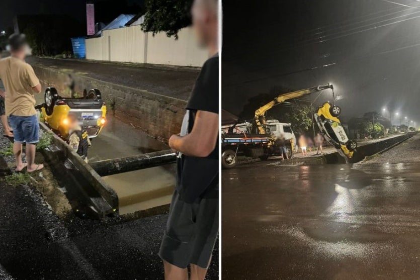 NO PARANÁ 10/12/2024 às 12:34 Viatura da Polícia Militar capota e vai parar em córrego após perseguição a motociclista