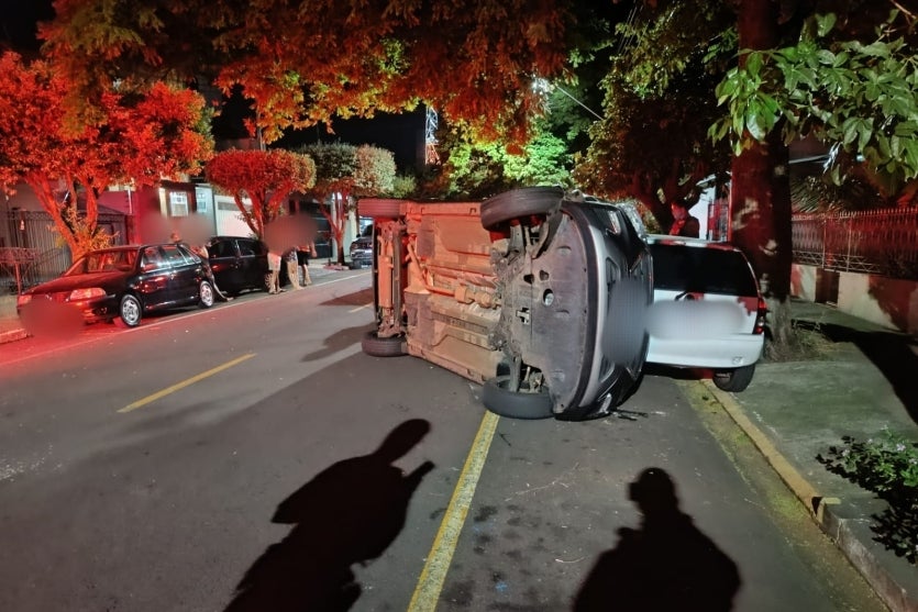 NOITE DE QUINTA 07/03/2025 às 08:10 Carro bate em veículo estacionado e tomba na rua Sergipe, em Umuarama