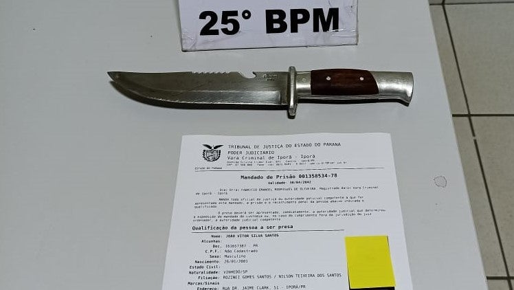 NOITE DE SÁBADO 08/05/2022 às 09:09 Homem com mandado por homicídio é detido em posse de uma faca em Iporã