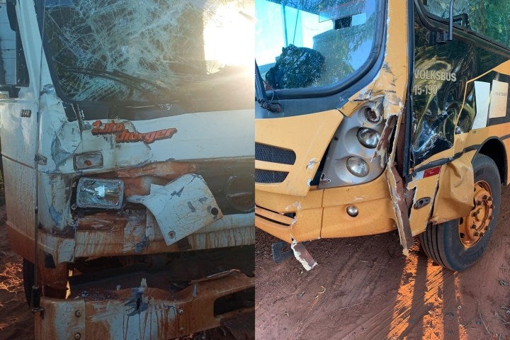 ÔNIBUS X CAMINHÃO 07/03/2023 às 09:50 Crianças são atendidas pelo Samu após colisão entre caminhão e ônibus escolar, em Altônia