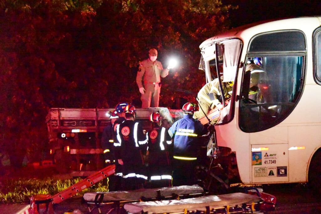 ÔNIBUS X CAMINHÃO 18/03/2023 às 21:08 Três pessoas ficam feridas após colisão entre ônibus e caminhão na PR-323 em Umuarama