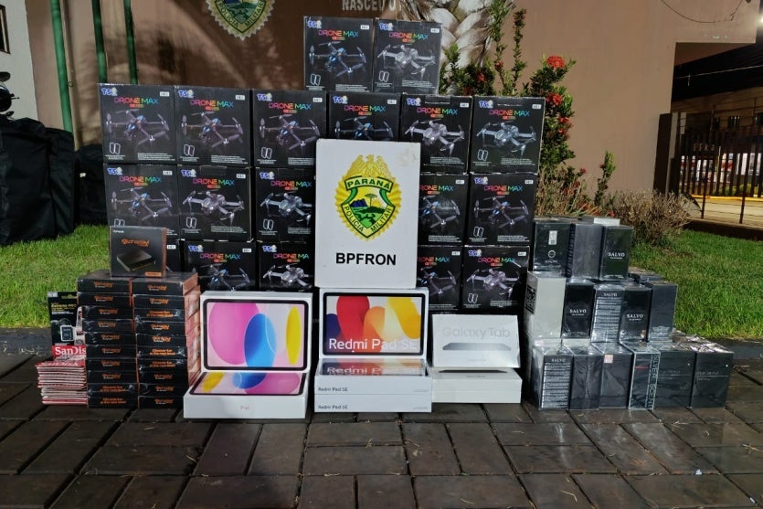 Operação Força Total XIV 25/04/2025 às 14:41 BPFron apreende mercadorias contrabandeadas em ônibus interestadual, em Juranda
