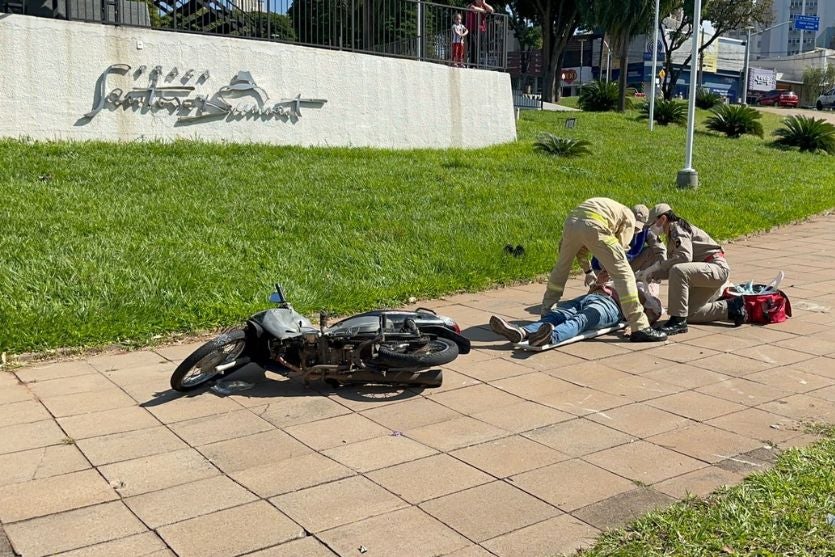 OUTRO ACIDENTE 13/05/2025 às 12:35 Casal sofre ferimentos após queda de moto no contorno da Santos Dumont; com vídeo