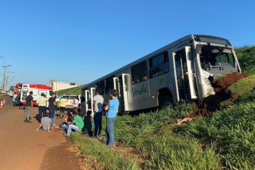 PAIÇANDU 28/03/2023 às 10:54 Acidente entre ônibus e motocicleta na marginal da PR-323 deixa mais de 20 feridos