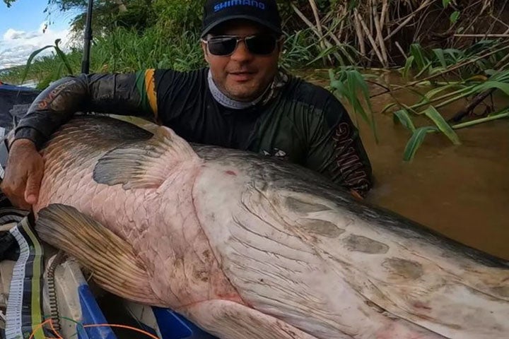 PEIXÃO 18/04/2023 às 07:17 Jovem de 26 anos quebra recorde mundial e pesca pirarara de 1,4 metro e mais de 70 quilos