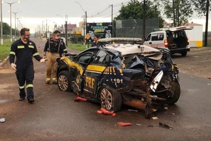 PERSEGUIÇÃO 13/10/2022 às 12:57 Policiais Rodoviários Federais ficam feridos em acidente durante perseguição em Salto del Guairá