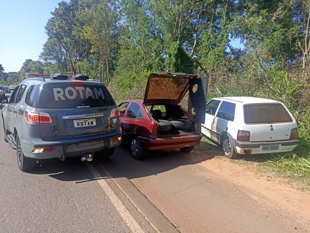 Pneus contrabandeados 24/05/2022 às 18:12 Policiais da Rotam apreendem carga de pneus contrabandeados em Perobal