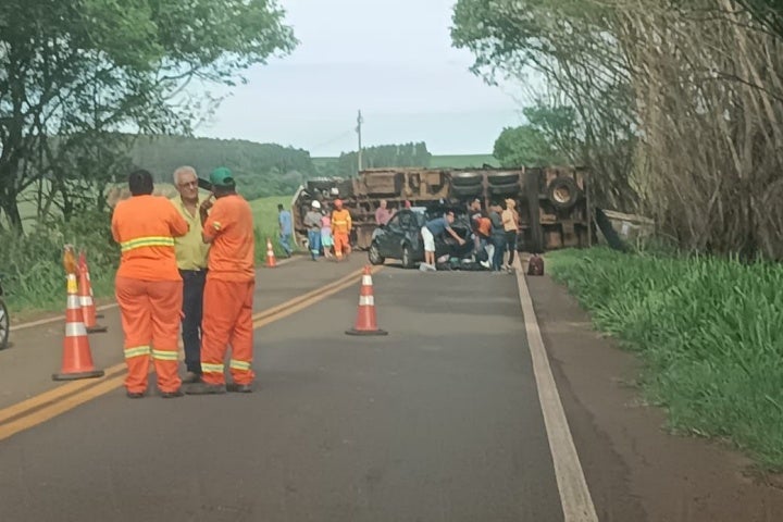 ponte do rio Piquiri 01/11/2024 às 11:02 Acidente envolvendo carreta e outros dois veículos interdita PR-317