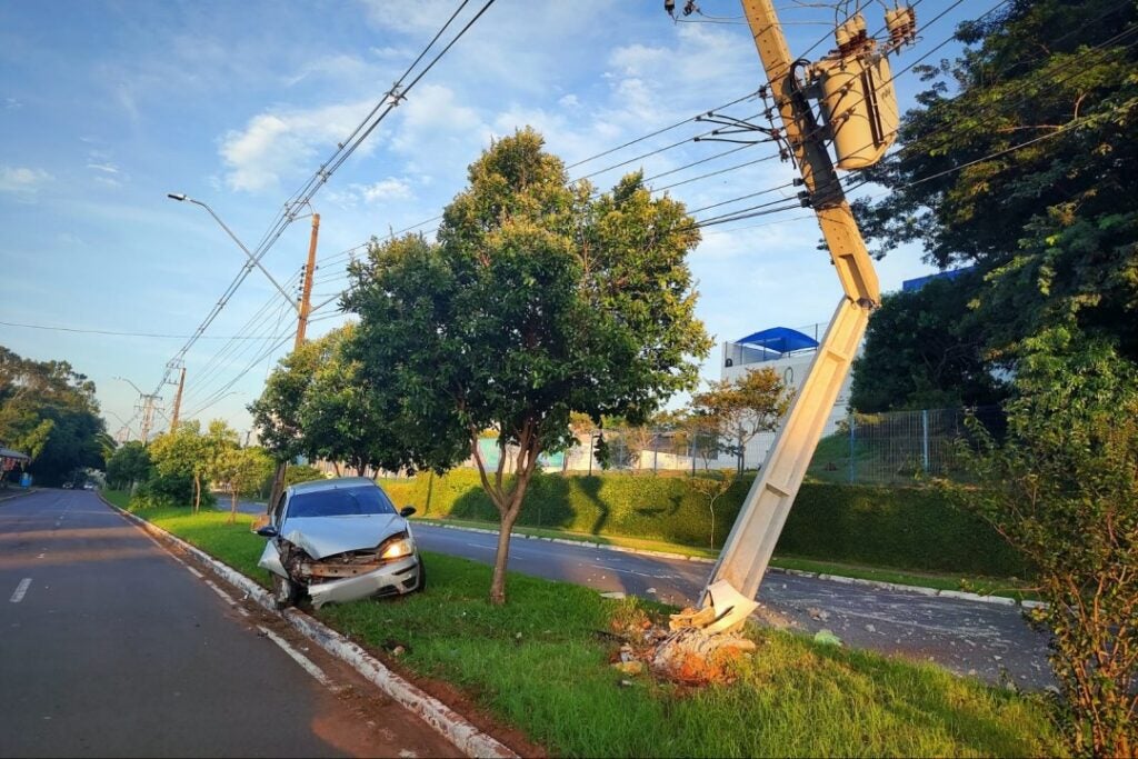 PRÓXIMO AO UIRAPURU 24/03/2023 às 07:43 Motorista colide em poste e moradores ficam sem energia, em Umuarama
