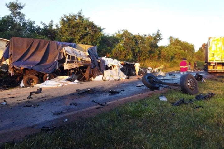 QUATRO VEÍCULOS 21/04/2023 às 11:51 Caminhoneiro de Maria Helena fica ferido após grave acidente na BR-163, no Mato Grosso do Sul