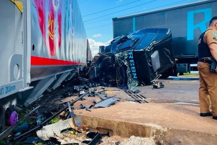 QUE SUSTO 17/01/2024 às 11:01 Vídeo mostra momento em que motorista de caminhão não consegue parar e colide com trem