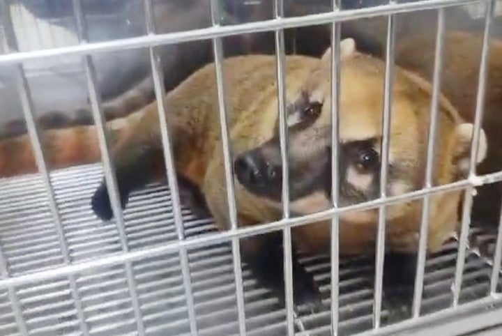 RESGATE ANIMAL 01/08/2023 às 16:45 Quati que atacou 2 pessoas é resgatado pelo IAT e levado para Centro Universitário de Cascavel
