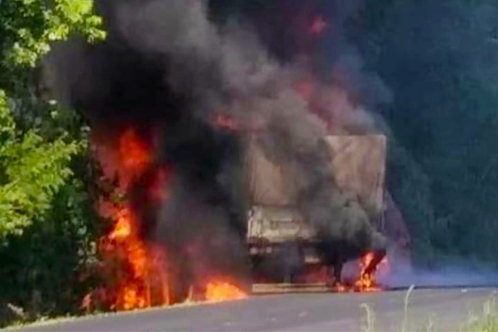 ROSÁRIO DO IVAÍ 23/12/2021 às 10:01 Caminhoneiro morre carbonizado após colidir contra árvores às margens da PR-082
