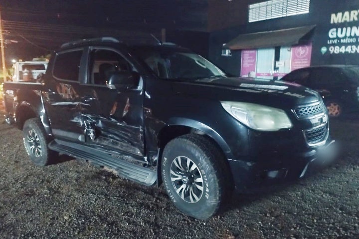RUA PORTO ALEGRE 23/02/2024 às 21:31 Condutora tem problema com pedais de caminhonete e bate em dois veículos estacionados