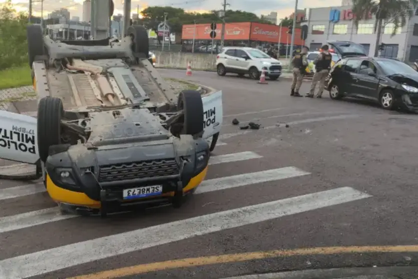 Acidente com viatura da PM deixa dois policiais feridos na manhã desta sexta-feira