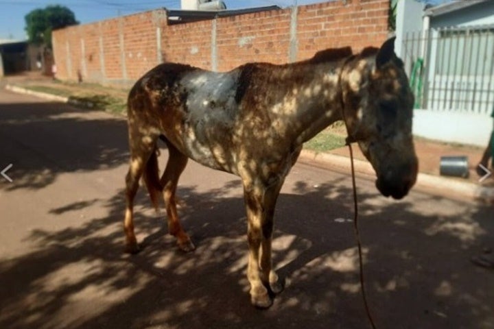 SARANDI 26/07/2022 às 19:49 Cavalo vítima de incêndio criminoso ficou cego, teve graves queimaduras e pode ser sacrificado