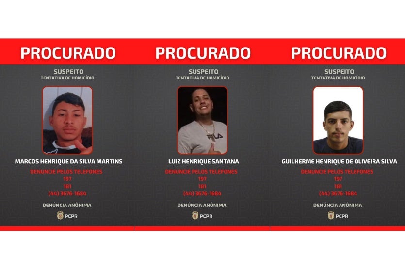 Sequestro 01/08/2024 às 11:57 Polícia Civil divulga fotos de três foragidos por tentativa de homicídio em Mariluz