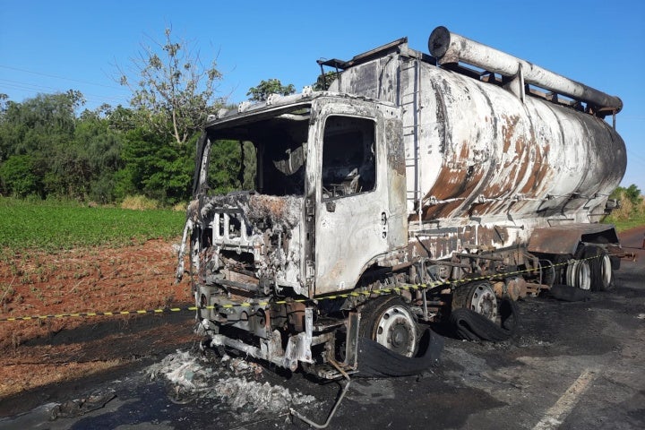 Sinistro 09/10/2024 às 12:14 Seis carretas foram destruídas em incêndio que atingiu pátio de empresa em Umuarama