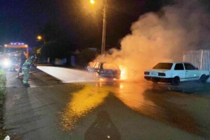 SUPOSTAMENTE CRIMINOSO 06/04/2023 às 09:22 Bombeiros combatem incêndio de veículo que foi ateado fogo em Goioerê
