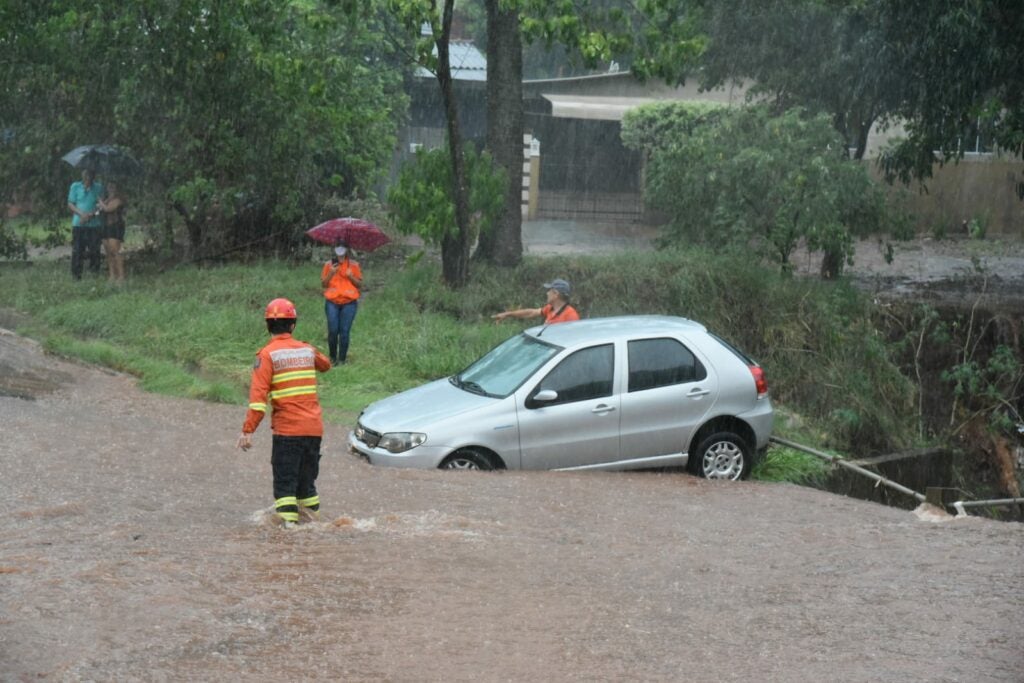 TEMPORAL 22/02/2022 às 16:48 Carro é arrastado pela enxurrada em Umuarama e quase cai da ponte do Panorama