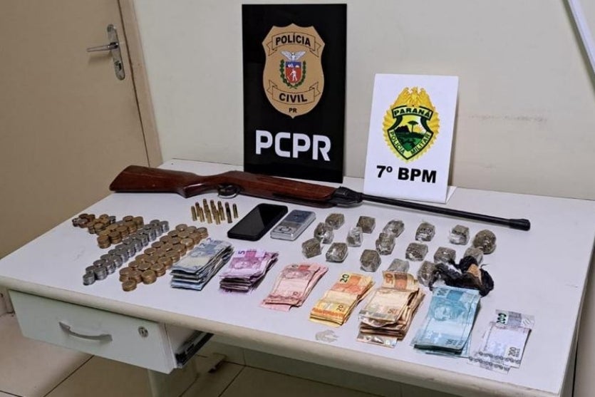 TRÁFICO DE DROGAS 08/11/2024 às 09:34 PM e PCPR encontram drogas, arma de fogo, munições e dinheiro em residência de Cidade Gaúcha