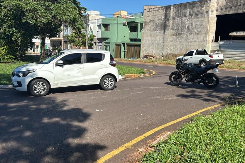 Colisão entre carro e moto deixa homem ferido em cruzamento movimentado de Umuarama