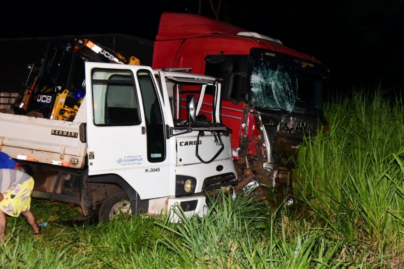 UMUARAMA 18/03/2025 às 21:30 Condutor fica em estado grave após colisão entre caminhão e carreta em Serra dos Dourados
