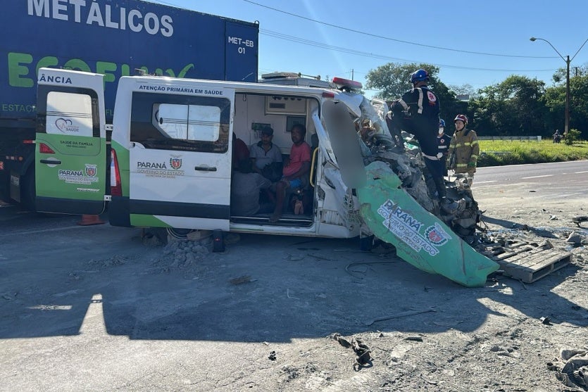 Motorista de ambulância fica preso às ferragens após acidente na PR-323, em Umuarama; vídeo